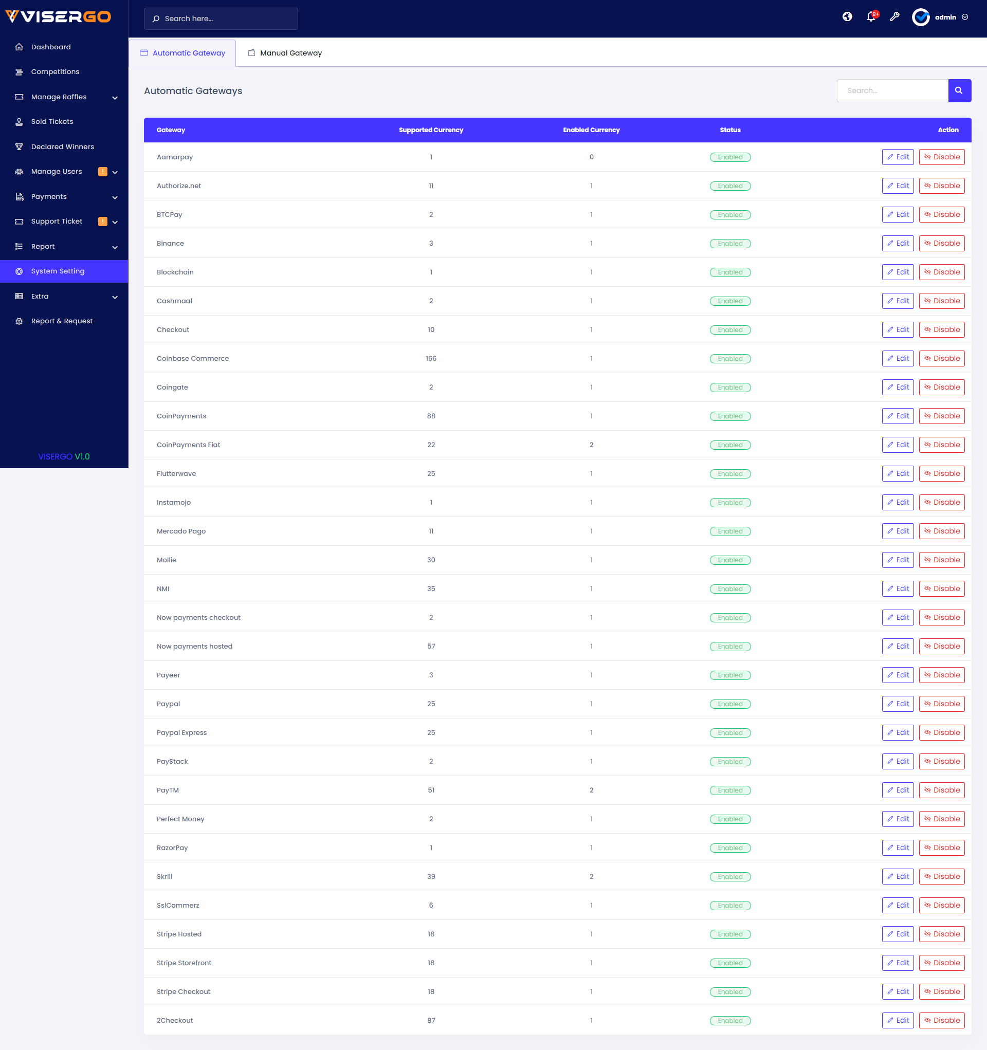 - Manage Payment Gateways.
