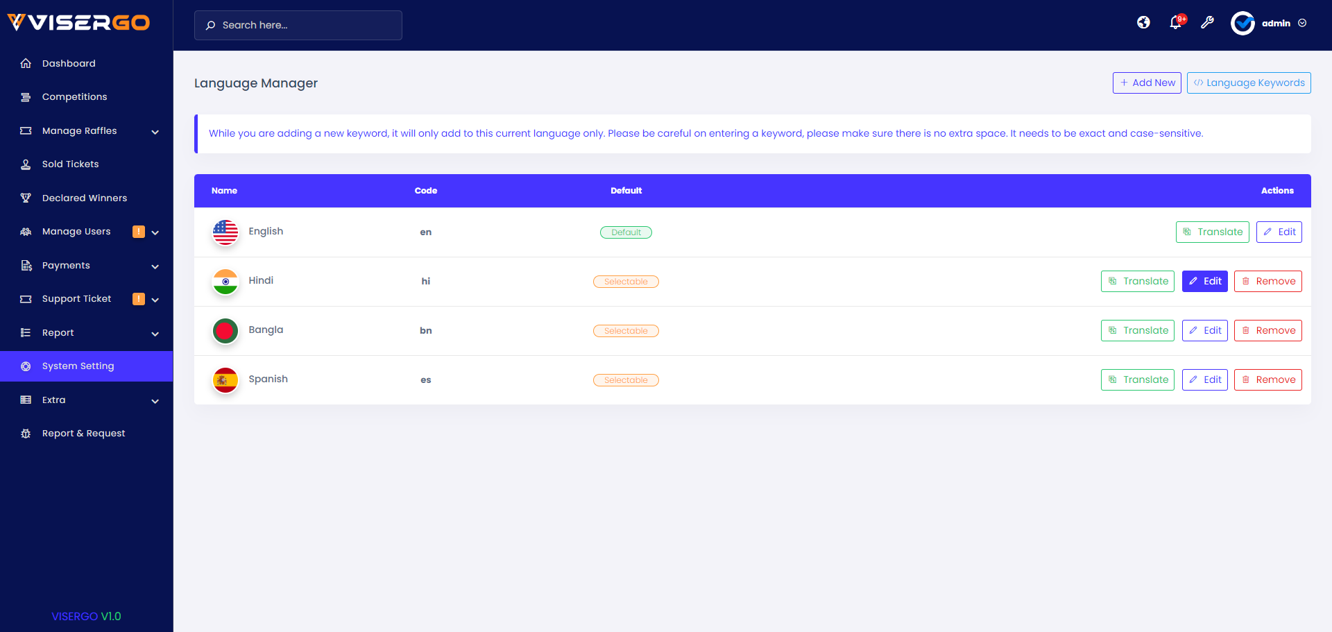 - Manage Language.