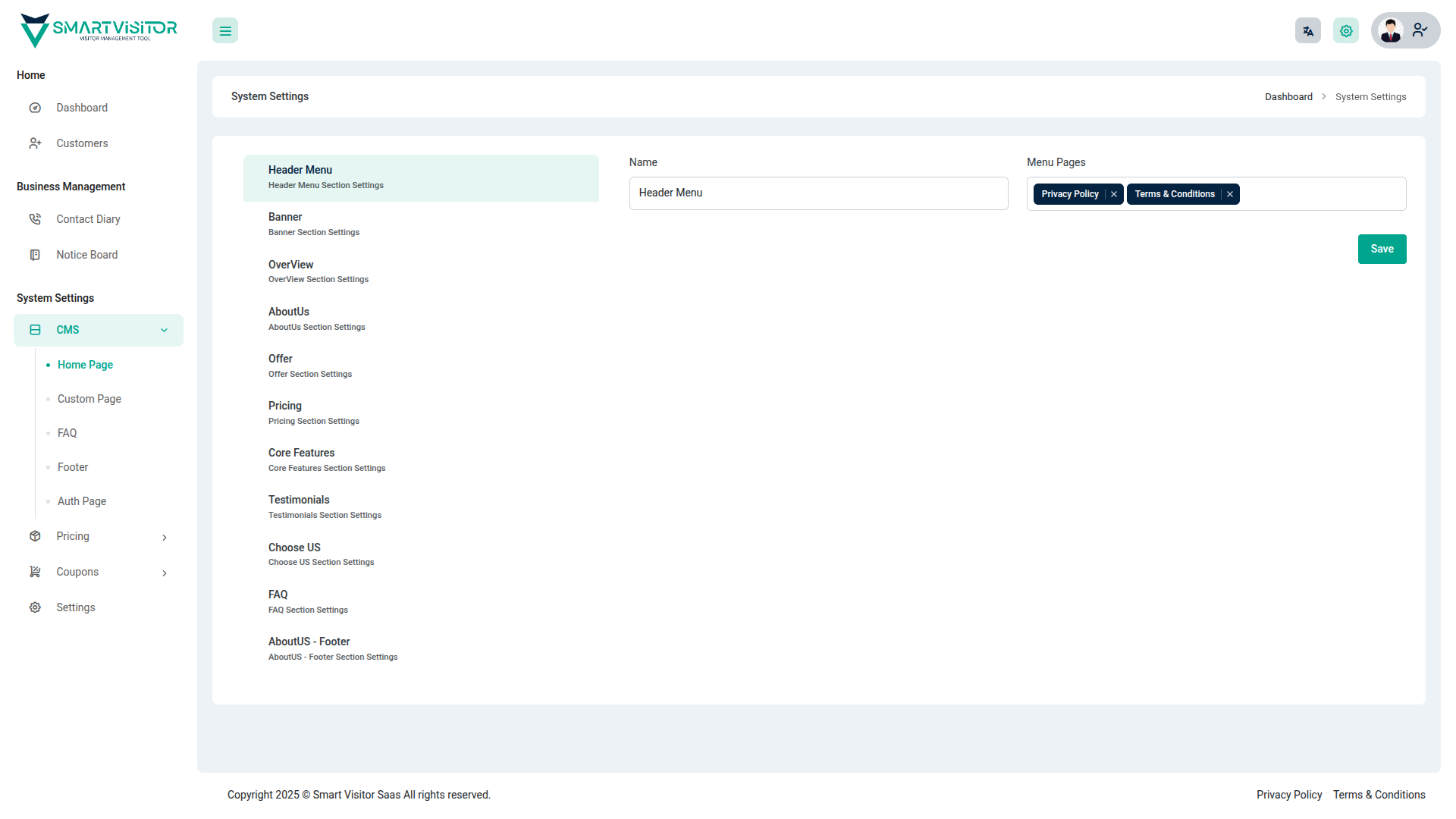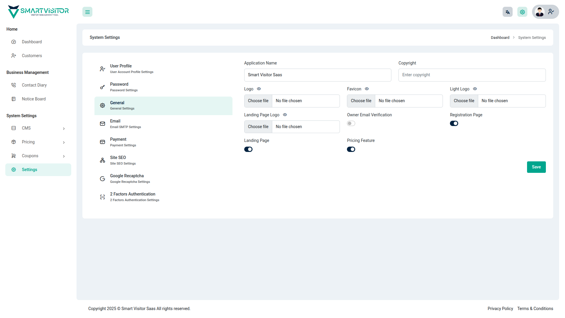 Version 1.6 (08 April 2025) * UI Improvement * Dynamic Landing Page CMS * Pricing Features Enabled/Disabled * 2-Factor Authentication * Impersonate Features * Fixed Small Bugs * Added Custom Color Picker in Theme Settings