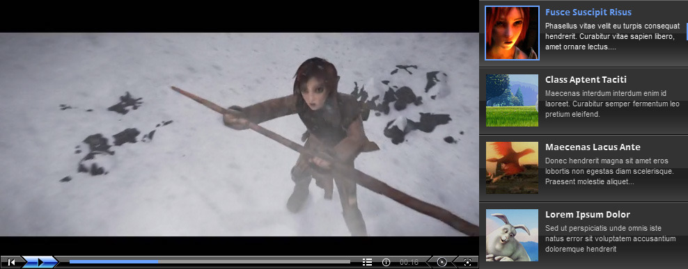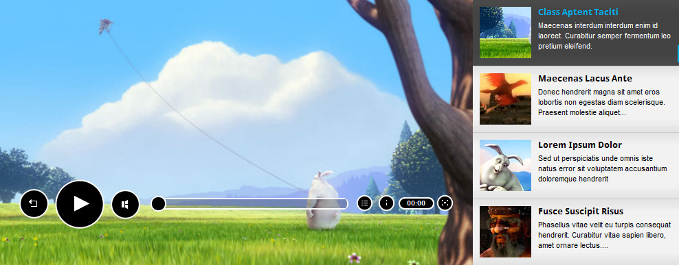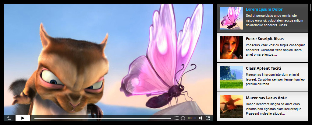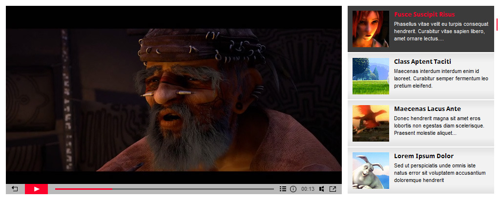 The video player comes in two versions: Right Side playlist and Bottom Playlist.