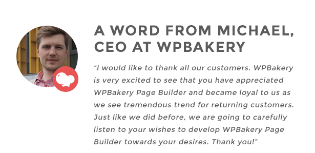 Thank-you for your interest in WPBakery Page Builder, Michael M