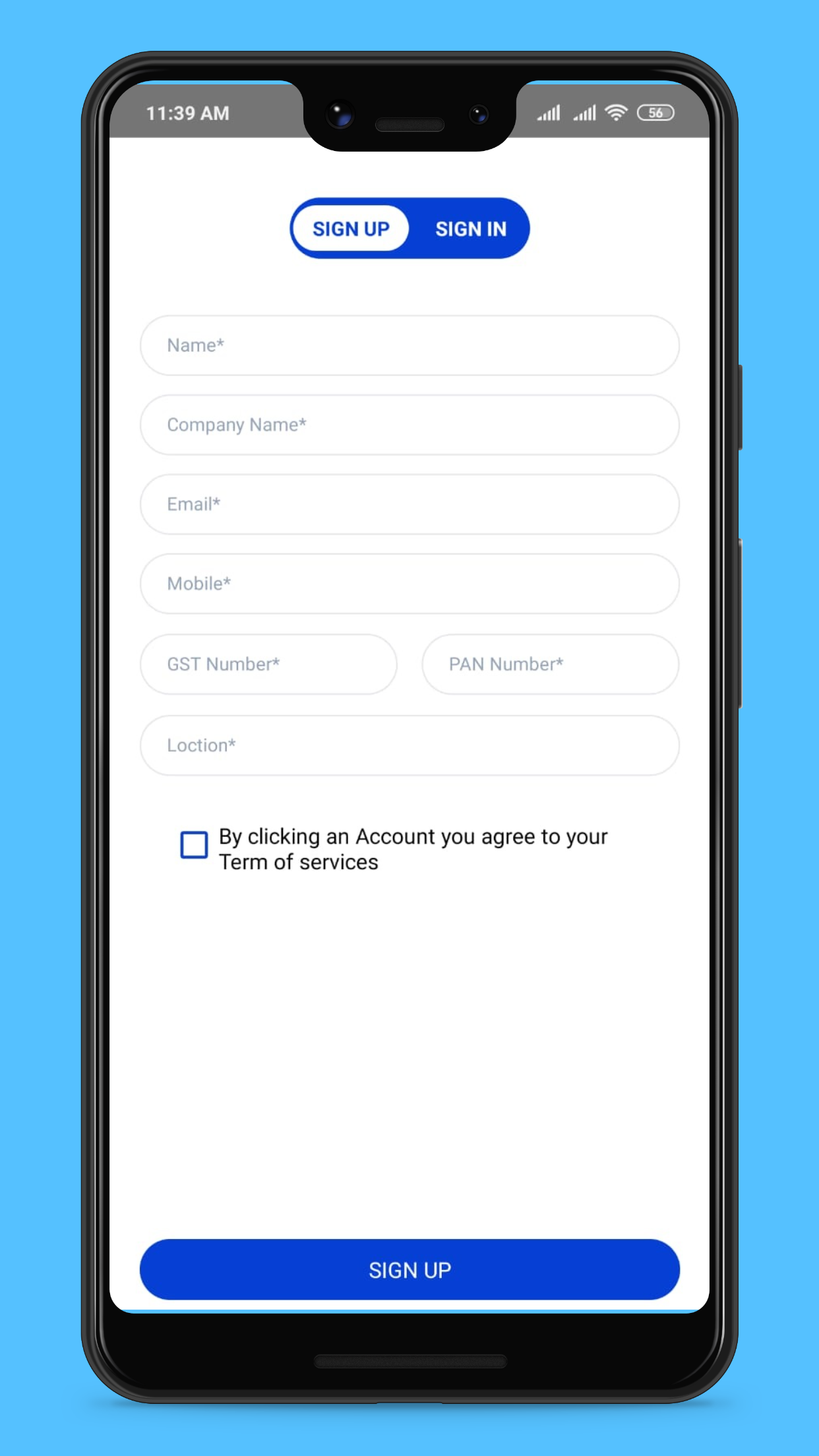 2) Login and signup screen