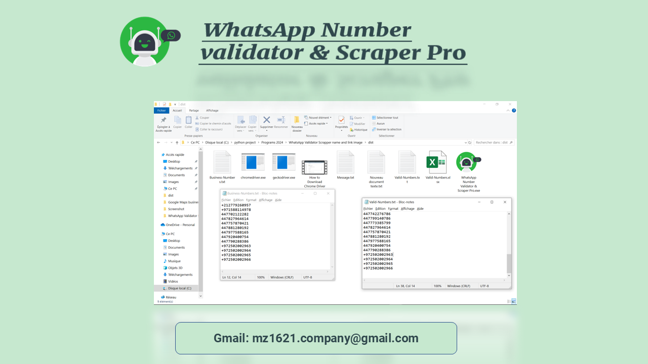 Version 2.2.7 – Posted June 11, 2025 1. Added ChromeDriver update button to support latest Chrome browser versions 2. Add scrape Name 3. Improved filtering and checking speed significantly 4. Fixed freezing issue when processing large lists of phone numbers Version 2.2.8 – Posted April 16, 2025 1. Fixed compatibility issue with Windows 11 and recent 2. Improved accuracy in detecting WhatsApp-registered numbers 3. Optimized the scraping process to use fewer system resources 4. Added better logging and progress indicators for long sessions 5. Enhanced error handling for invalid or malformed phone numbers Version 2.2.9 – Posted February 19, 202 1. Added support for exporting filtered numbers with status tags 2. Improved handling of number formats (international and local) 3. Fixed rare crash when switching between browser engines 4. Introduced multi-browser support (Chrome, Firefox) Version 3.1.0 – Posted November 6, 2024 1. Fixed bug causing the tool to stop when ChromeDriver was outdated 2. Improved response time when checking thousands of numbers 3. Enhanced log file structure for easier debugging 4. Fixed duplication issue in exported lists Version 3.1.1 – Posted February 14, 2025 1. Added support for importing numbers from Excel and CSV files 2. Fixed minor validation bug affecting some mobile number formats 3. Improved WhatsApp connection stability Version 3.1.2 – Posted November 6, 2024 1. Redesigned interface for better usability and navigation 2. Added option to pause/resume number filtering process 3. Improved system compatibility and error messages 4. Fixed UI glitches on some screen resolutions Version 3.1.3 – Posted July 7, 2025 1. Fixed problem wrong results 2. Add click to delete advertisement