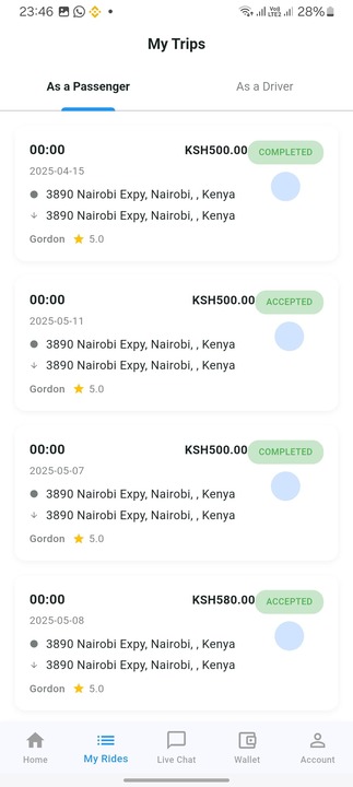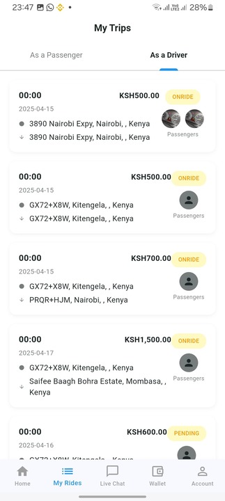 Single app for passengers and drivers with a role-switching feature for flexibility.