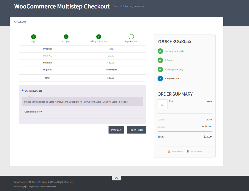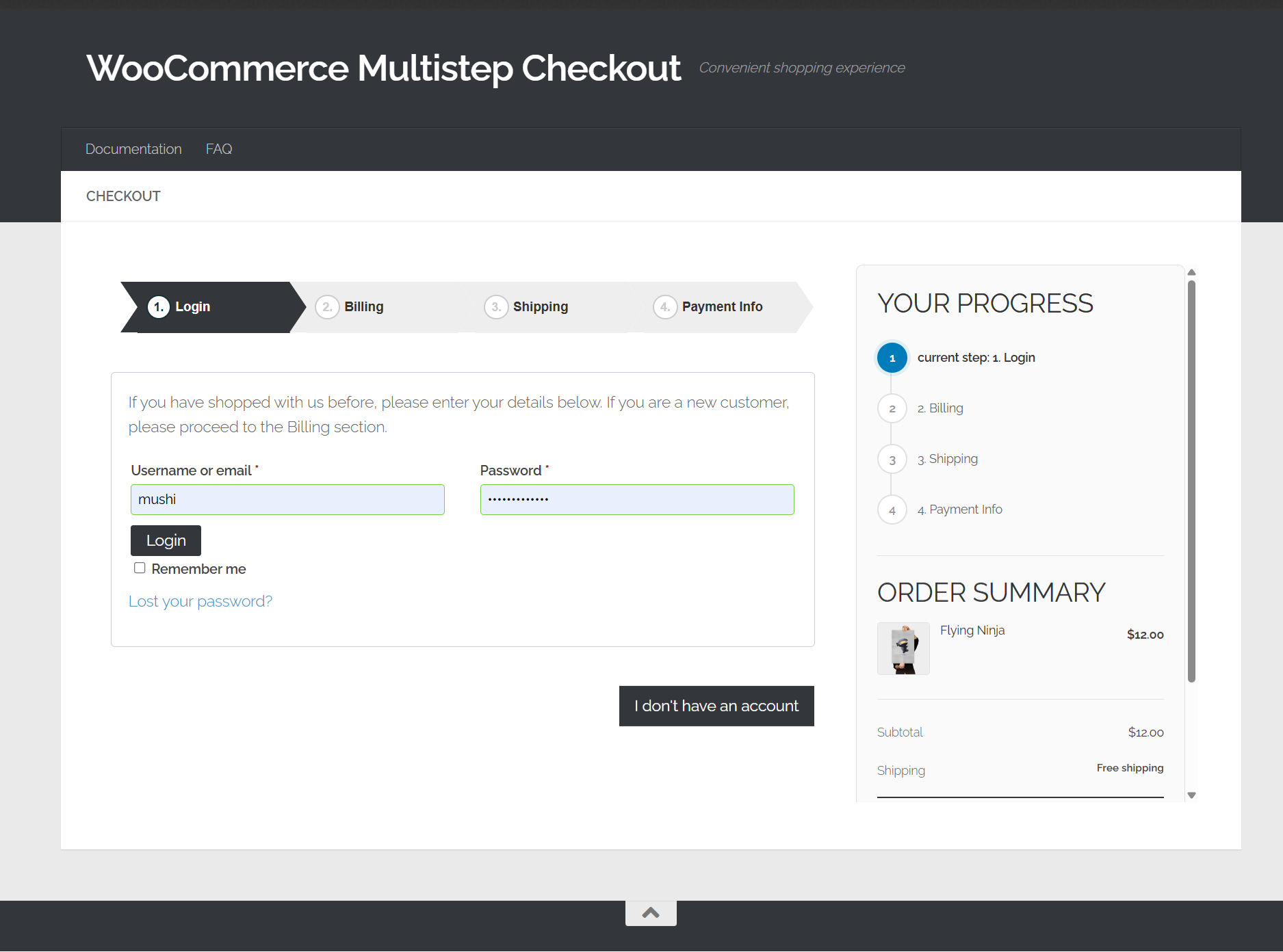 WooCommerce Multistep checkout helps to improve your conversion rate by simplifying and beautifying checkout process.It will create checkout wizard by splitting different sections of default WooCommerce checkout page, so users will have convenient shopping experience.