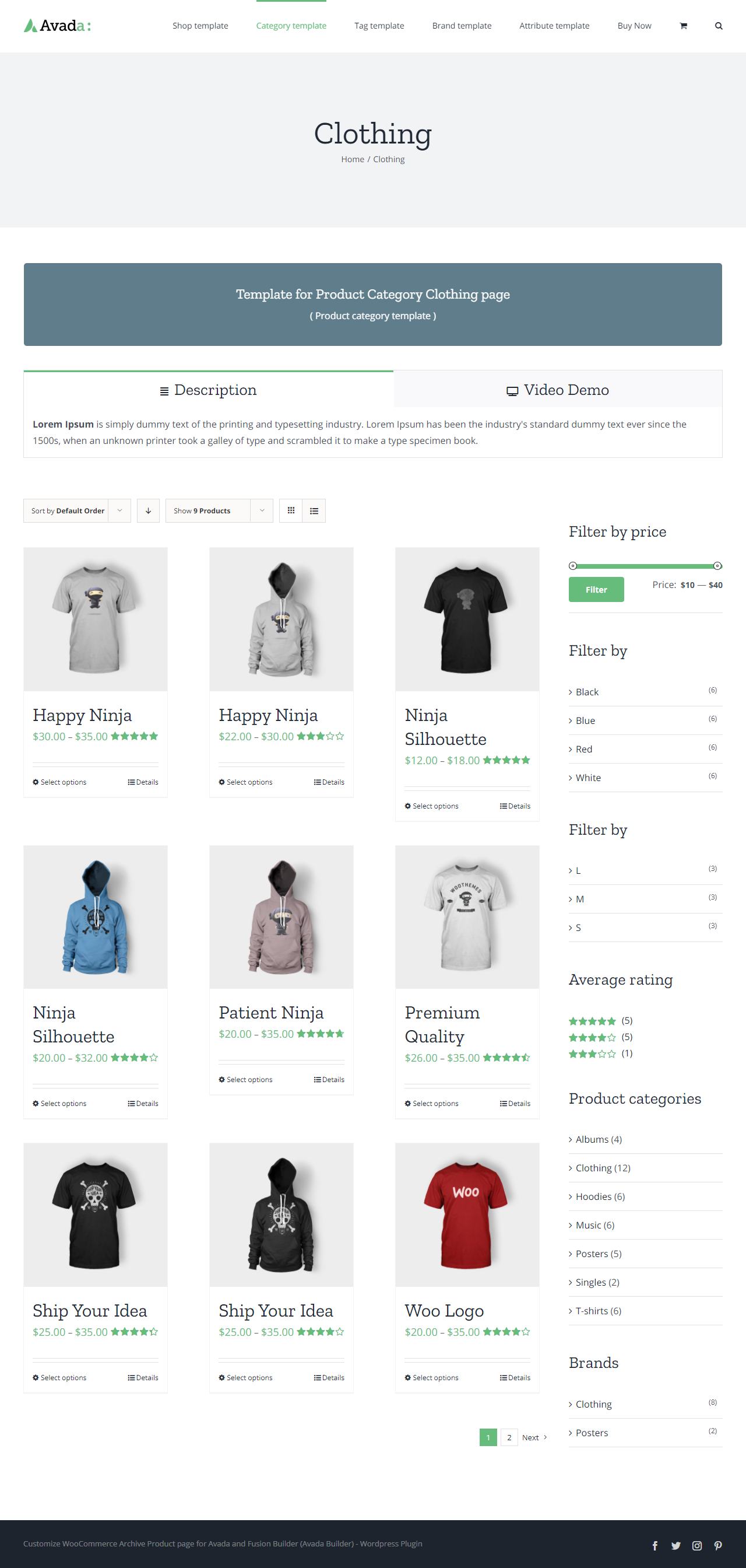 Video Demo Plugin: WooCommerce Archive Product page for Avada and Fusion Builder