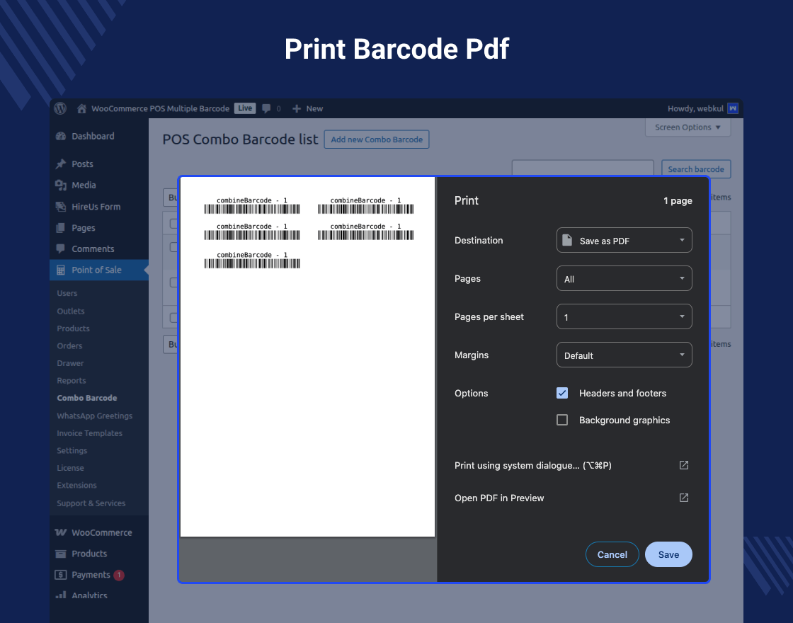 - The WooCommerce POS Configurable barcode supports dark theme.