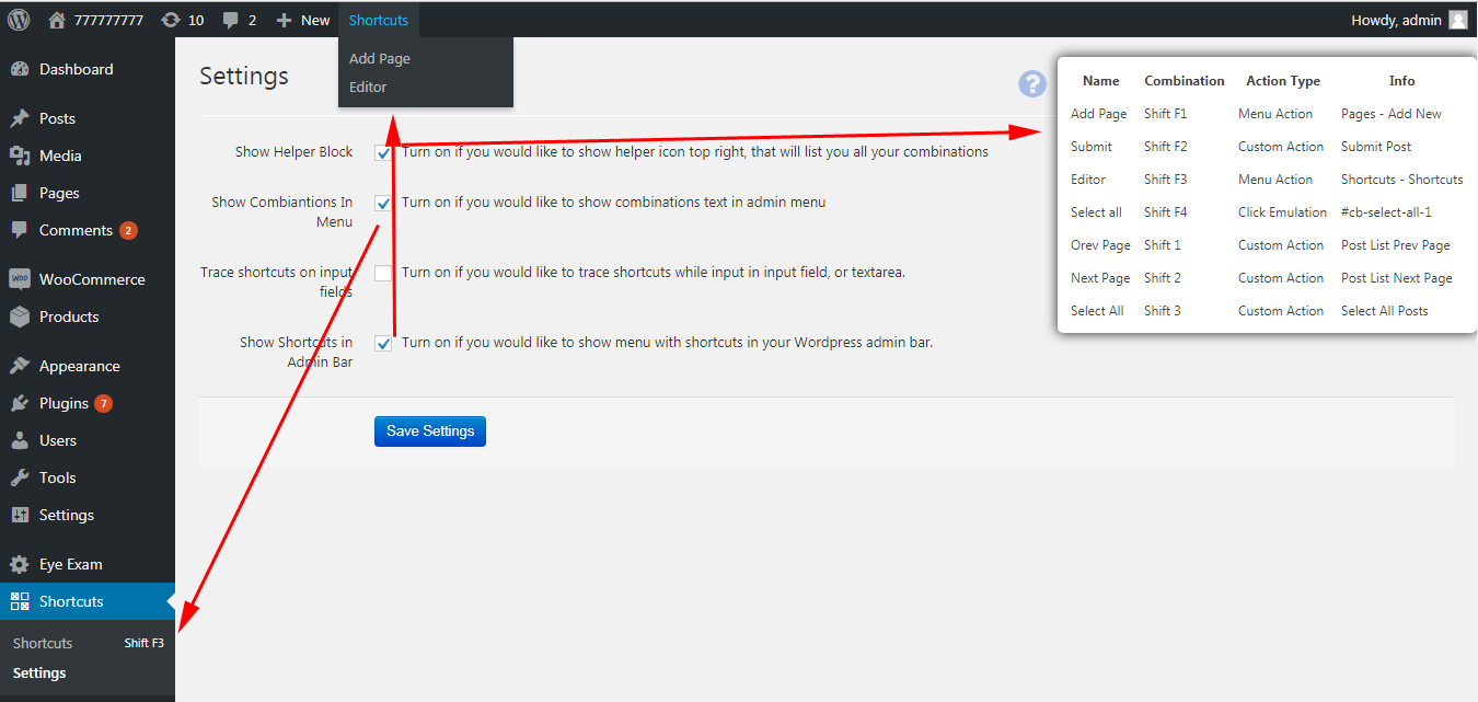 You can login to https://test.voodoopress.net/wp-login.php with test/test login/password to test plugin onlineSo let’s check what we have in plugin. After installation you will find new menu Shortcuts left hand.