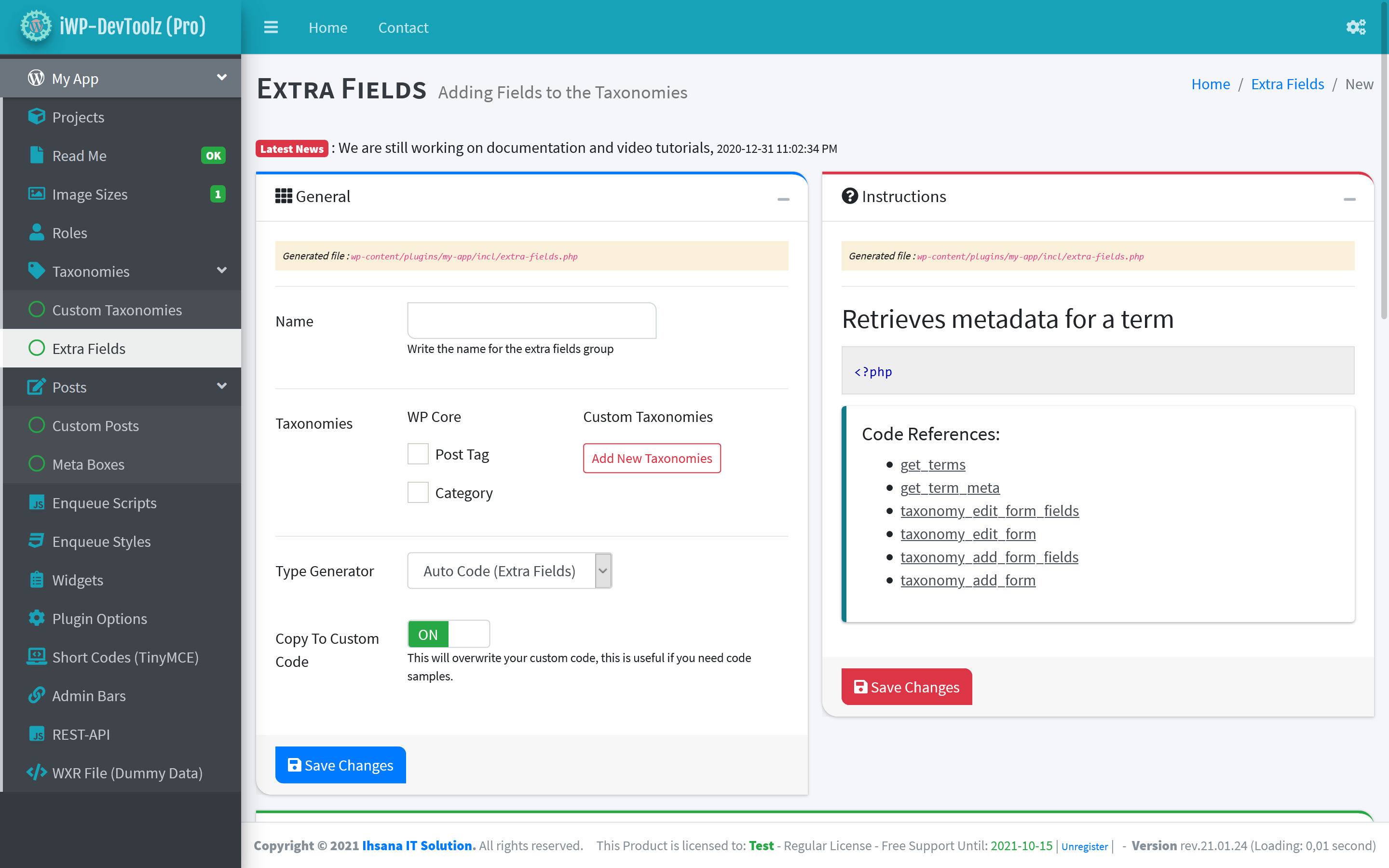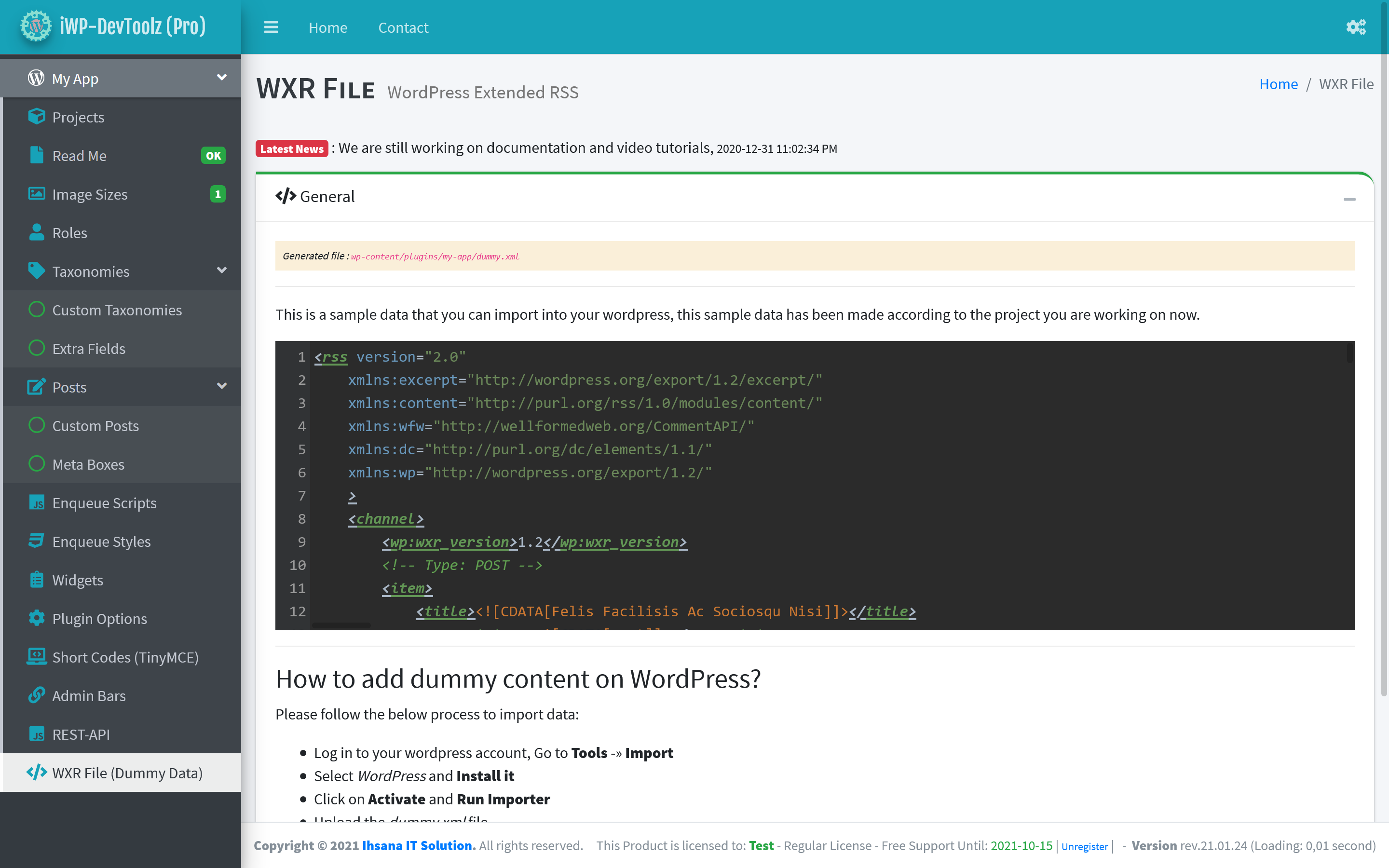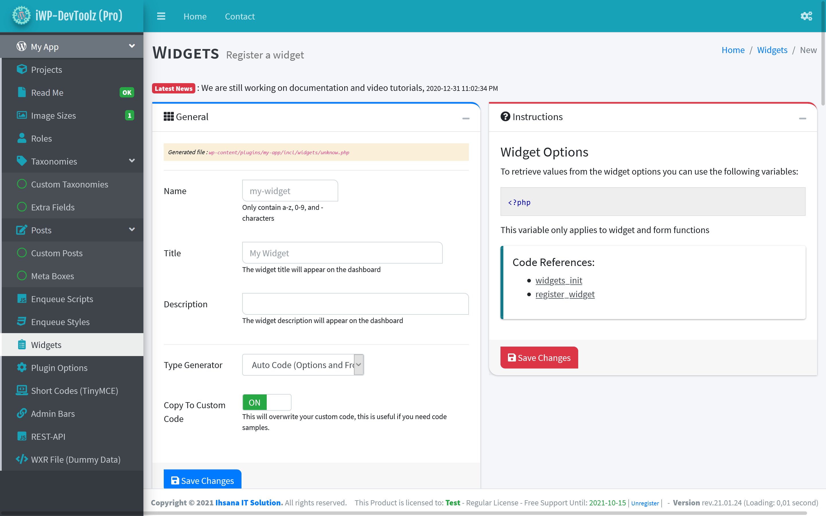 iWP-DevToolz is a WordPress Plugin Maker (stand-alone tools) can build a complete plugin code and also you can develop a WordPress Plugin that customized features very quickly. Like: ReadMe, Image Size, Custom Posts, Custom Fields, Short Codes/TinyMCE Plugin, Custom Taxonomis, Extra Fields, User Roles, Extra User Fields, Enqueue Scripts, Enqueue Styles, Widgets, Plugin Options, Admin Bars, REST-API, WXR File, Elementor Widgets, WPBakery Page Builders, WooCommerce Settings, WooCommerce Checkout Fields and other.