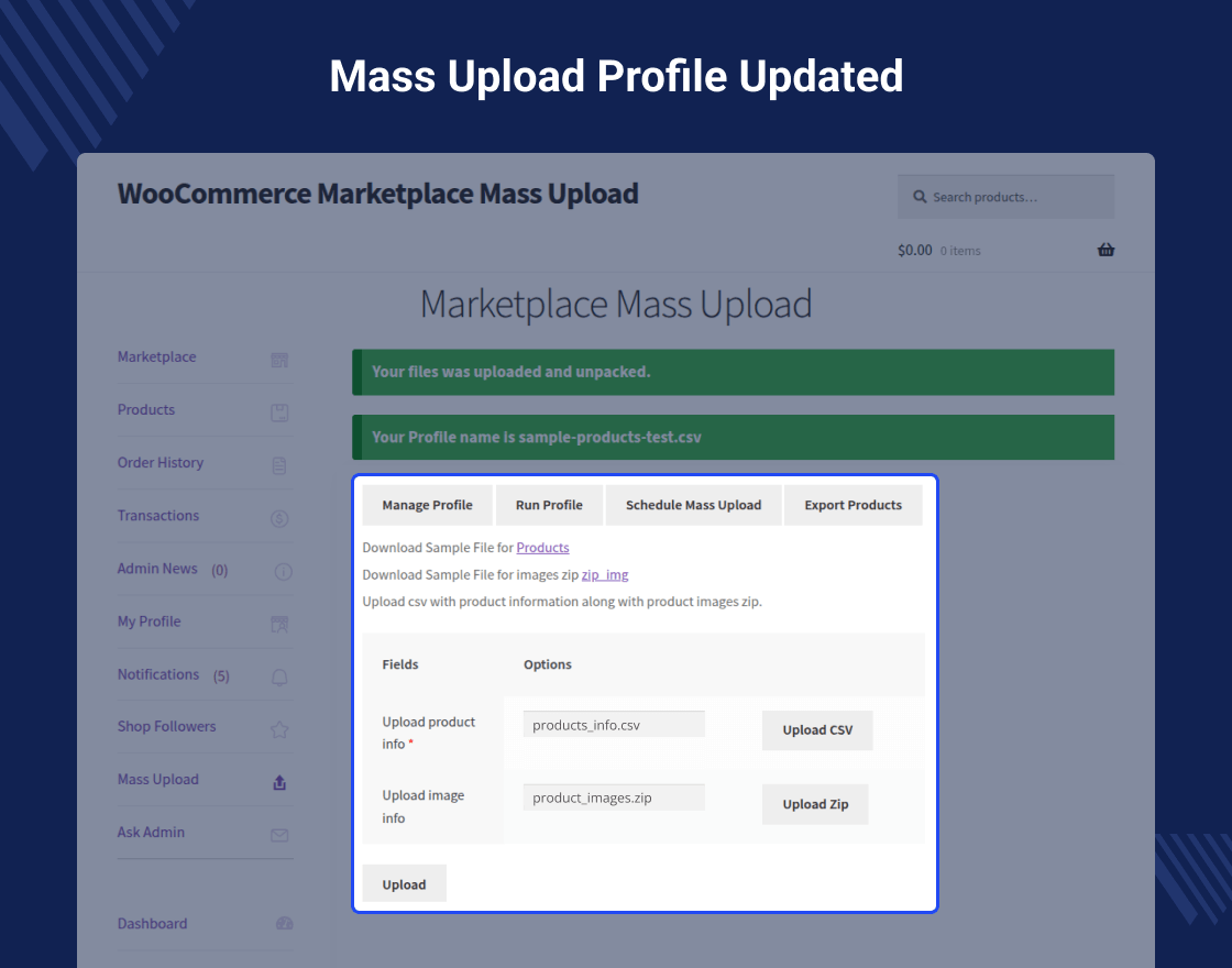 The plugin allows sellers to upload the image along with the products in zip format.3 – Download Sample Files
