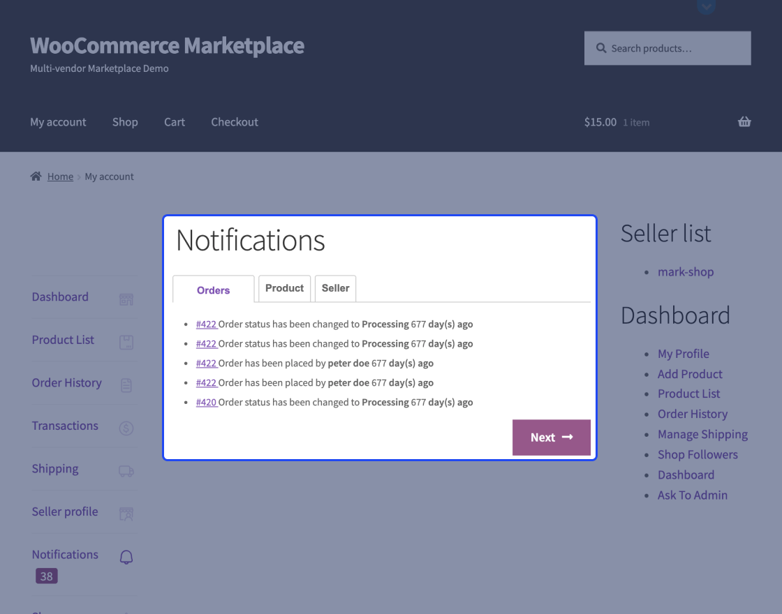 v 5.1.3 (2021-12-24) Added: Compatibility with the Martfury theme and resolved styling conflicts. Added: Compatibility with the WoodMart theme. Added: Compatibility with the Woostify theme. Added: 'Given by' column in backend feedback listing. Fixed: Review section for seller login and guest user. Fixed: Notice throwing on shipping class update. Fixed: Days format in notifications section on seller dashboard. Fixed: A seller shipping visible to other sellers on the backend dashboard. Fixed: Conflicts on seller registration with HM Multiple Roles plugin. Fixed: Responsive issue on seller shipping popup. Fixed: Admin Dashboard menu links not redirecting to the backend for seller login. Fixed: Advanced commission module availability check condition.