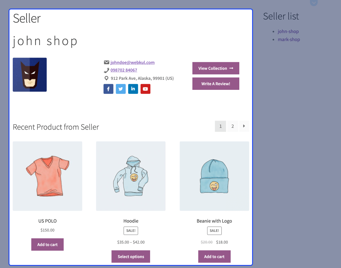 Using the product by feature, buyers will be able to see the seller’s name on the product page. Also, the customer will be able to check the profile page of a seller by clicking on the name of the seller on the product page.