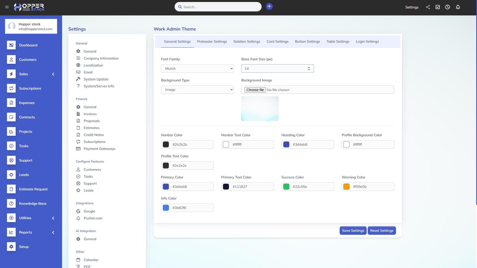 Transform your Perfex CRM into a modern, stylish, and fully customizable workspace. The Work Admin Theme brings elegant design, flexibility, and full control over your CRM’s appearance — from colors and typography to tables, buttons, and even the login page layout.
