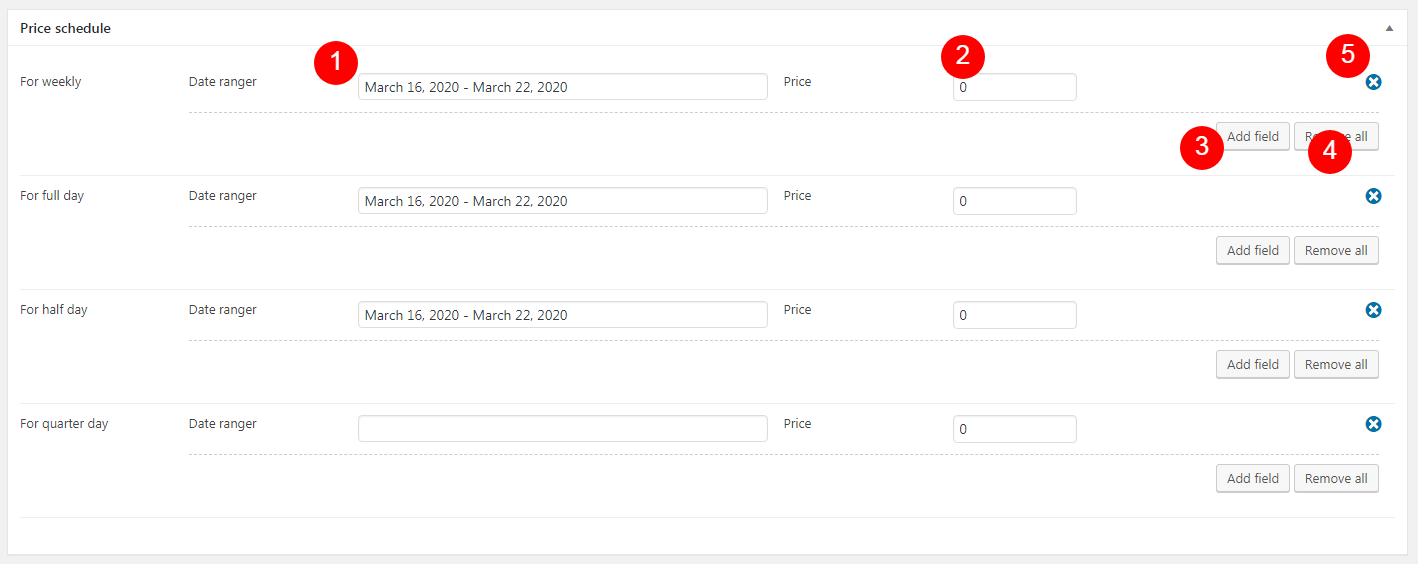 You can use it to set your boat’s availability, set custom prices for specific dates. It has four type: price for weekly, price for full day (1 -> 6 days), price for half day (4 hours), price for quarter day(2 hours). With each price type, you can defined price period ranger via date time ranger pickerResponsive layout