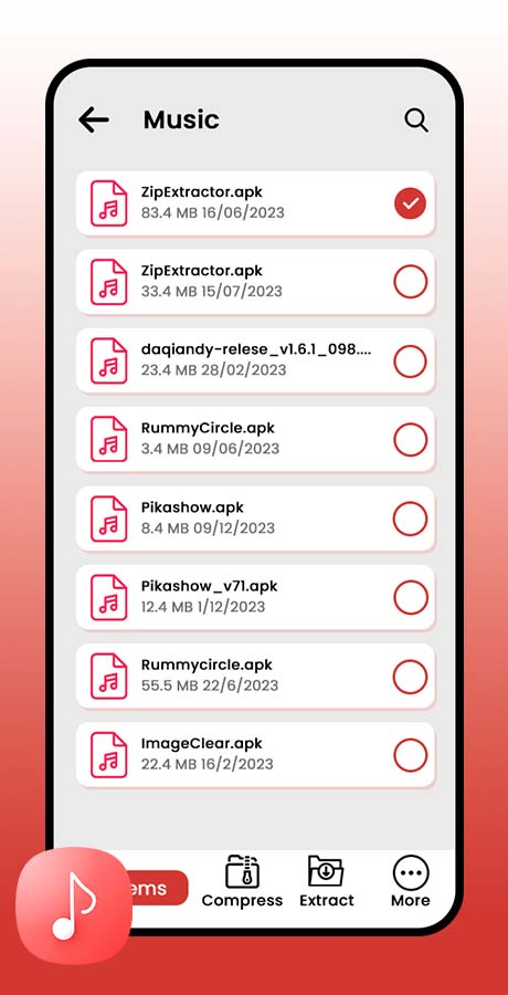 Manage Audio, Video & Picture File - Create a zip of your multiple media files, and extract them easily. - View, Rename, delete files and share with other platforms and move to another folder as well. - List out all the media files and play with third-party platforms.